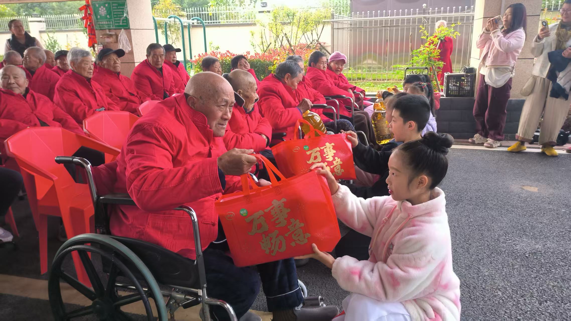 活动现场,孩子们把平日里节衣缩食攒下的零花钱换成牛奶、面包、抽纸、洗衣粉等实用物品,双手递到老人面前。“奶奶,祝您身体健康!”稚嫩的祝福声在院子里此起彼伏,让不少老人红了眼眶。