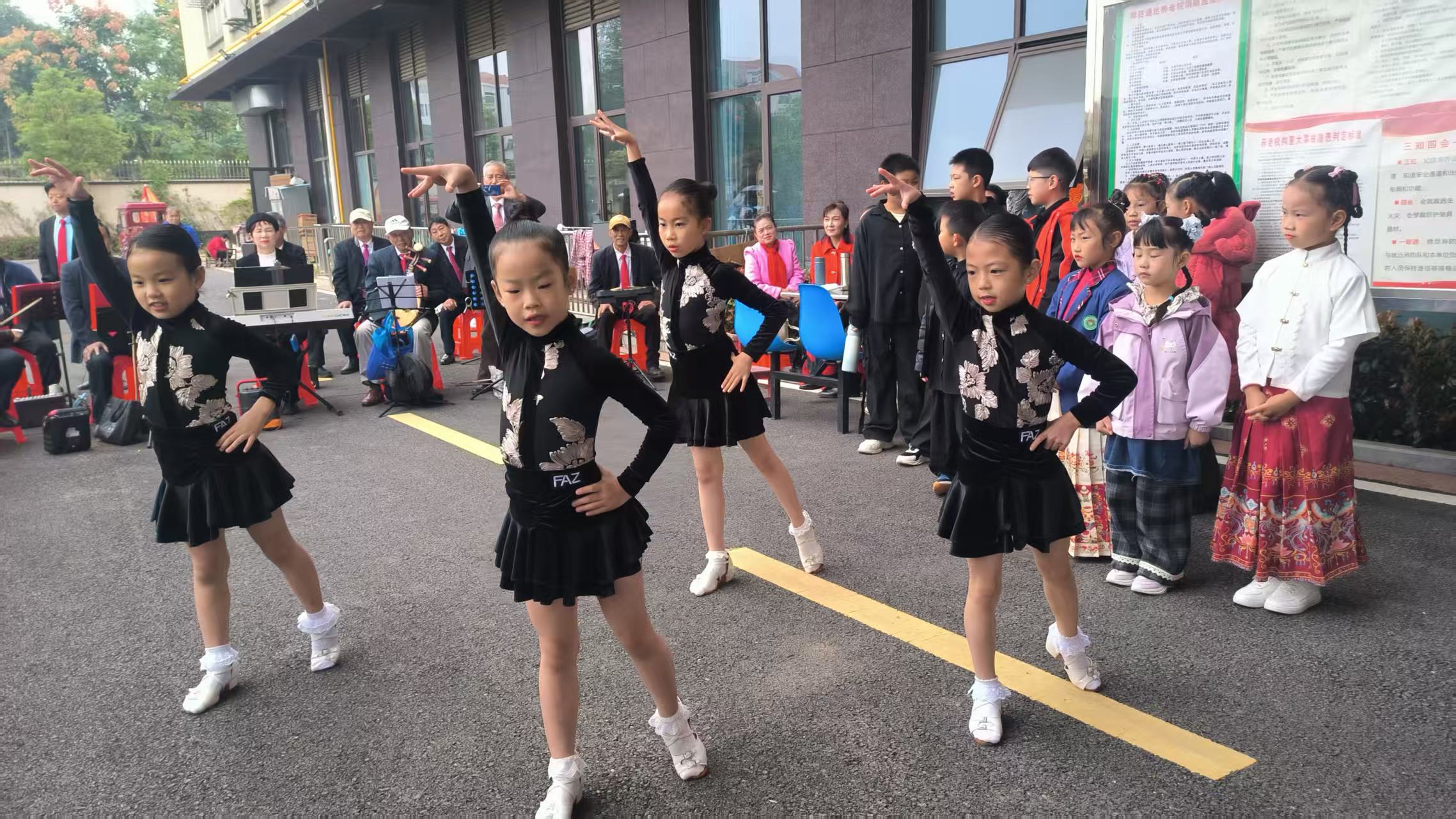 随后,小学员们轮番登台,献上精心排练的街舞《豆蔻梢头》、国风舞《同簪》、爵士《小酒馆》以及拉丁版网络热曲《刀马刀马》。灵动的舞姿、饱满的情绪,赢得台下掌声不断,老人们笑得合不拢嘴,纷纷举起手机记录精彩瞬间。