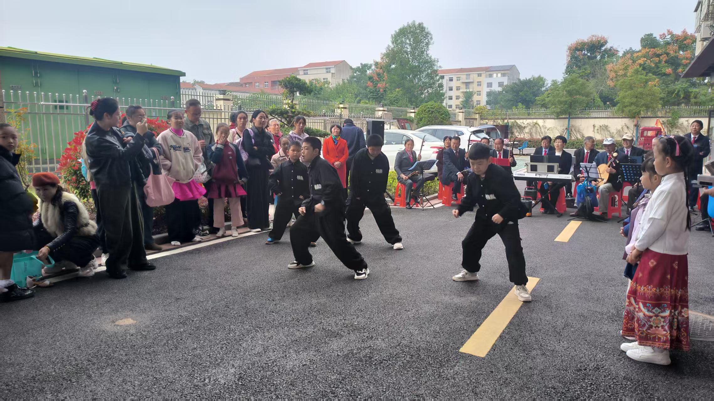 当天,长江新区阳逻开心歌舞友会、阳逻街高新艺术团也派出30位“银发演员”,带来黄梅戏、湖北大鼓、红歌联唱等节目,与孩子们同台献艺。老少同堂、其乐融融,养老院里洋溢着浓浓的节日氛围。