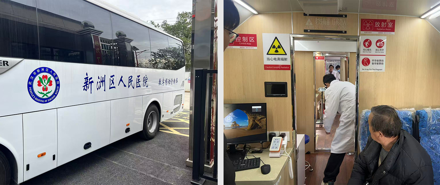 新洲区人民医院DR体检车搭载先进的数字化DR影像系统,具备移动医疗、远程会诊等功能。